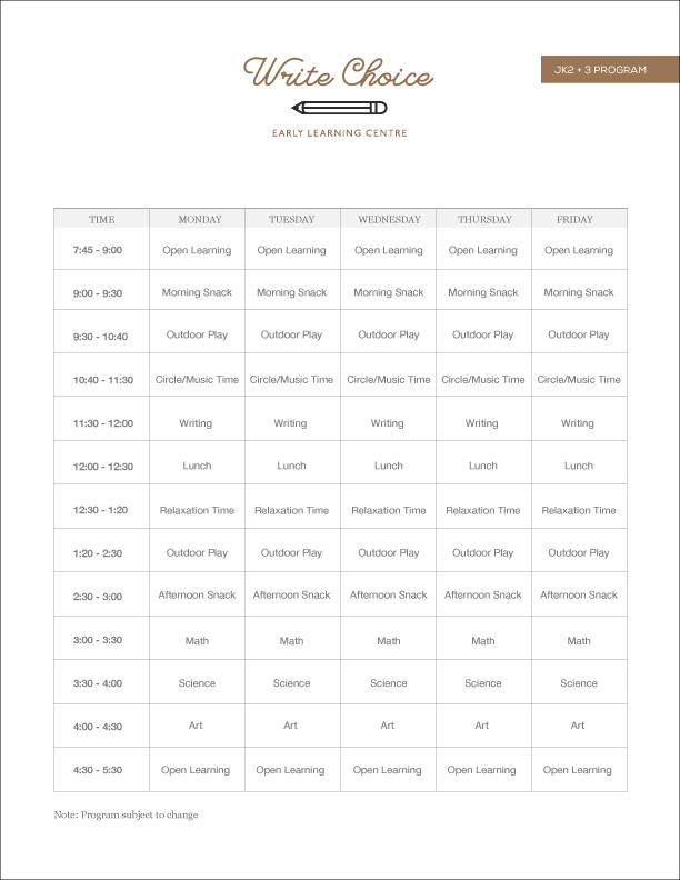 JK2 program for ages 3-4 provides the opportunities for your child to develop academic, emotional, and social skills on a primary level. Individual attention is provided to allow children to learn at their own pace. Of course play is also an important component of learning and children in this group will be provided with ample opportunity to actively explore, manipulate and interact within their environment.